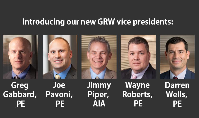 Greg Gabbard, Joe Pavoni, Jimmy Piper, Wayne Roberts, and Darren Wells have recently been named GRW Vice Presidents. This achievement is an acknowledgement of these five professionals' varied contributions to the firm.